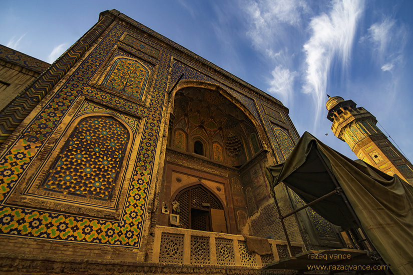 Considered to be the most ornately decorated Mughal-era mosque, Wazir Khan Mosque is renowned for its intricate faience tile work known as kashi-kari, as well as its interior surfaces that are almost entirely embellished with elaborate Mughal-era frescoes. The mosque has been under extensive restoration since 2009 under the direction of the Aga Khan Trust for Culture and the Government of Punjab,with contributions from the governments of Germany, Norway, and the United States” Reference